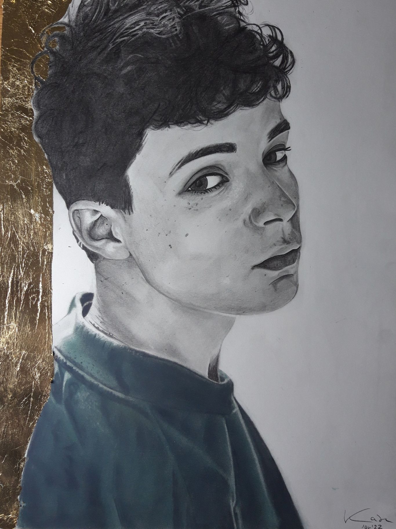 Bleistift, Buntstift, Lidschatten, Goldakzente